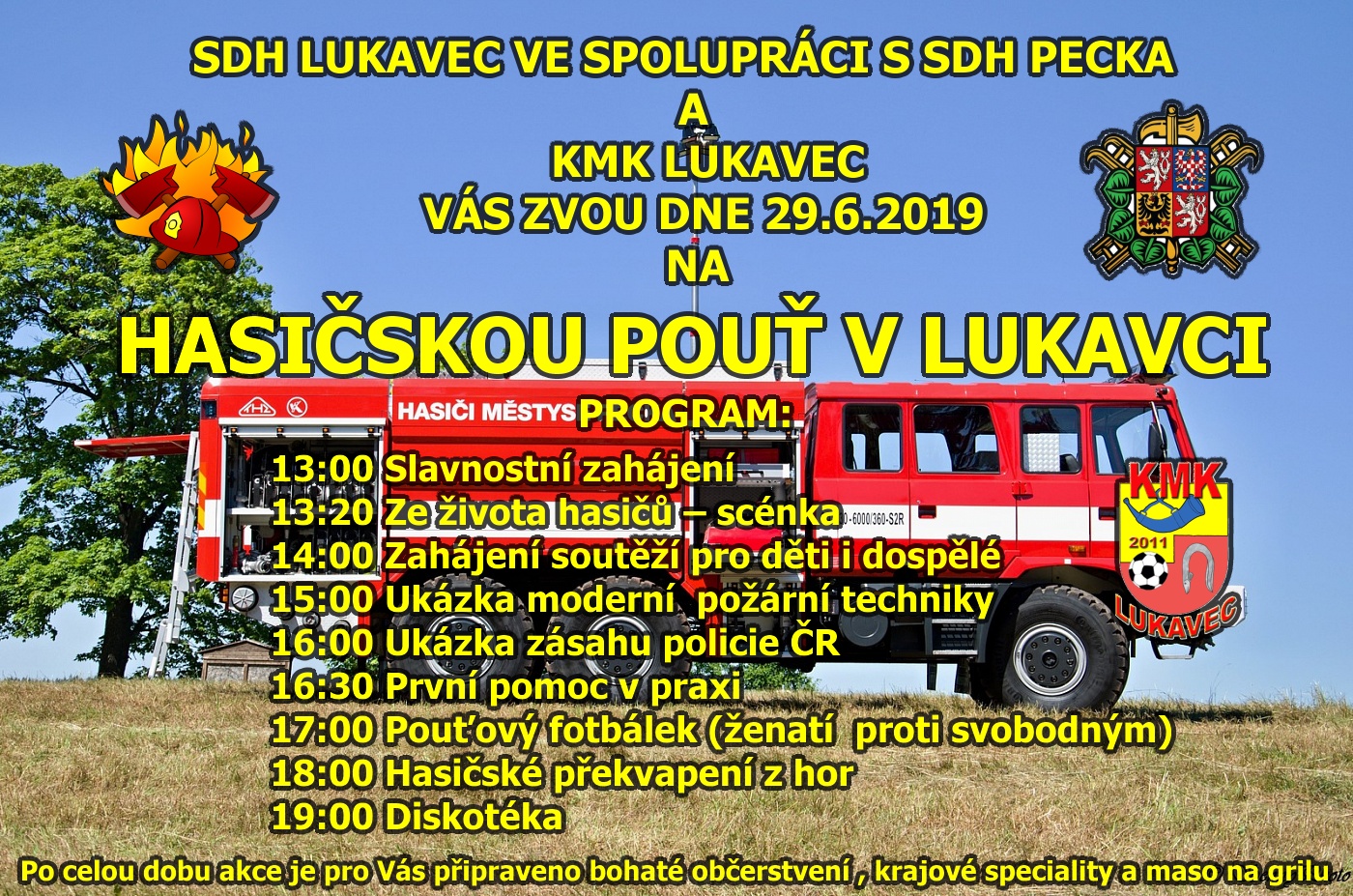 V sobotu 29.6. 2019 od 13 hodin se na hřišti v Lukavci uskuteční Hasičská pouť.