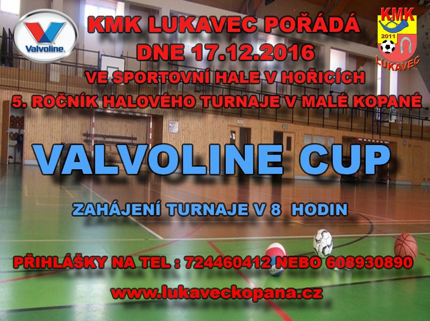 Halový turnaj VALVOLINE CUP 2016 proběhne dne 17. prosince 2016 v hale Gymnazia Hořice od 8 hodin do 17 hodin
