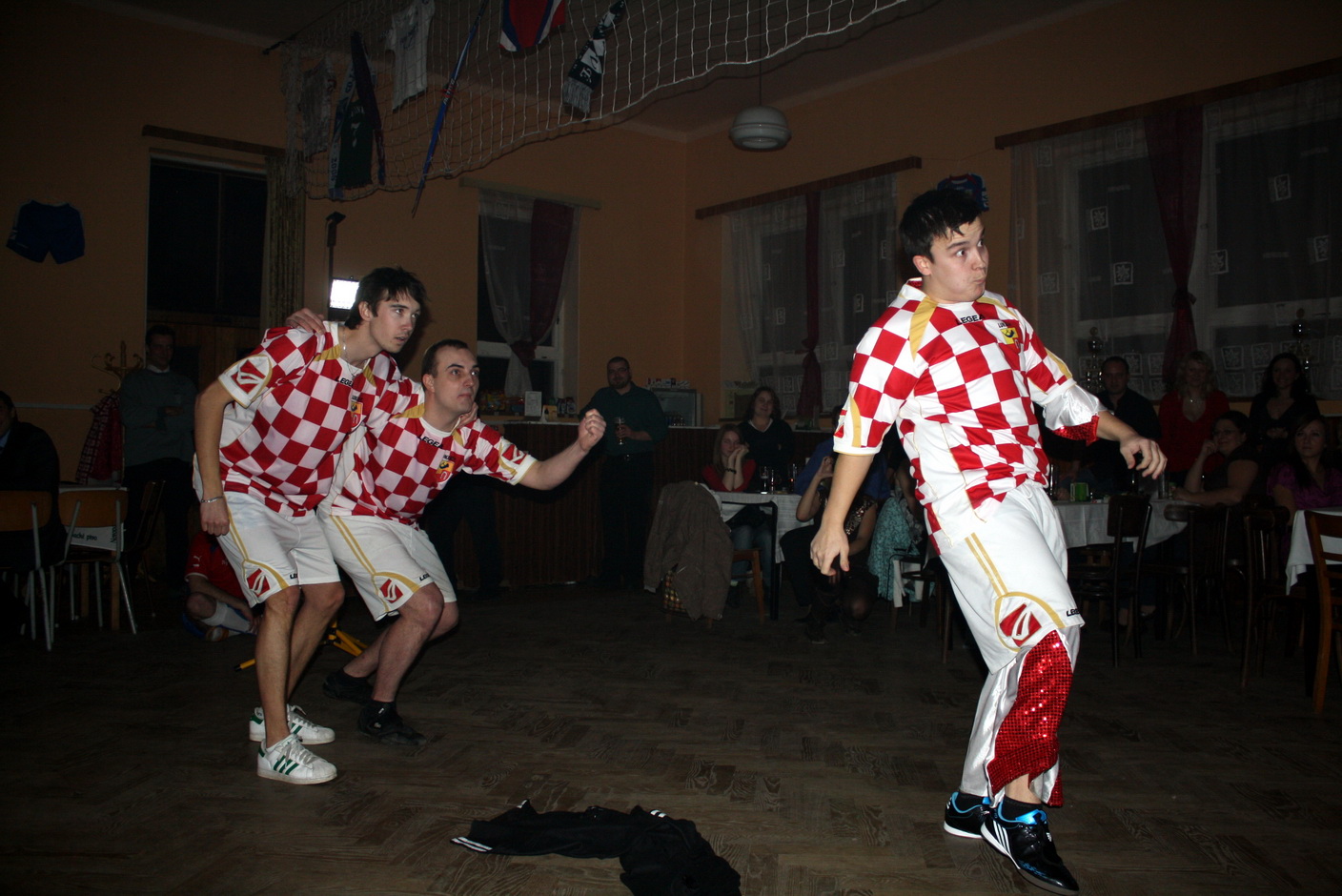 Na parket nastoupilo trio fotbalistu Pavel Moravce, Miloš Nožička a Honza Bartoš ml.